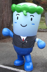 | 乳頭温泉から田沢湖高原へと向う引き湯の中から 生まれた温泉の妖精!その愛嬌と温かさで皆さん の心と体のコリをほぐします。 秋田弁の「温かい=ぬくい」が名前の由来。 特徴:回転技が得意な、やんちゃな男の子。 左右が分からないので、踊りが合わない。 頭の露天風呂をなでなですると 健康になるというご利益がある。 |