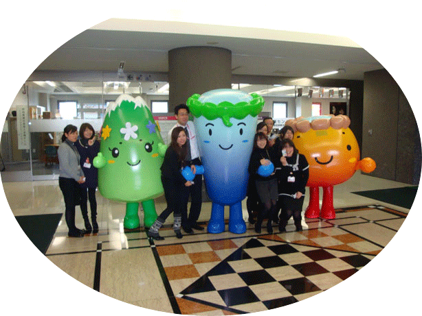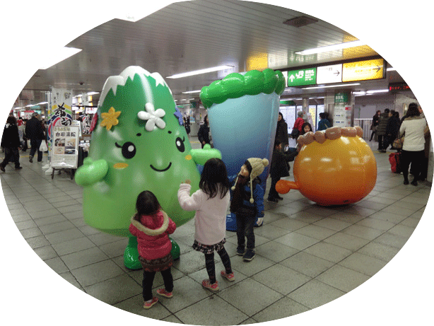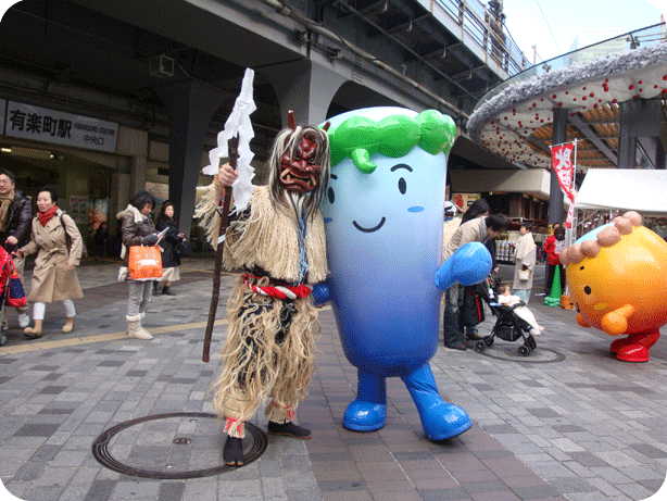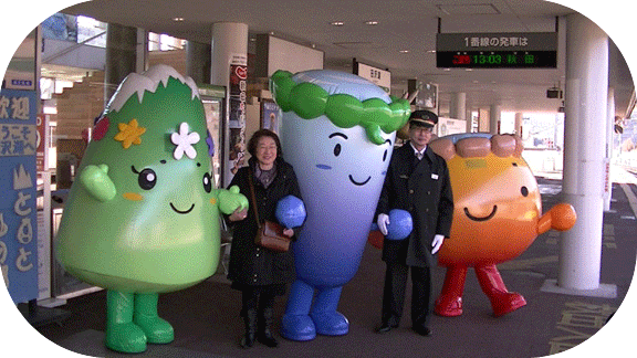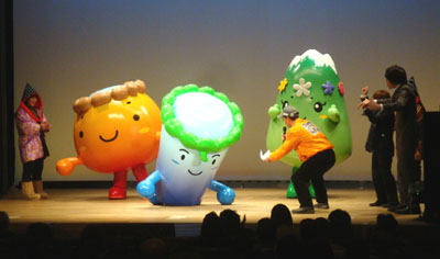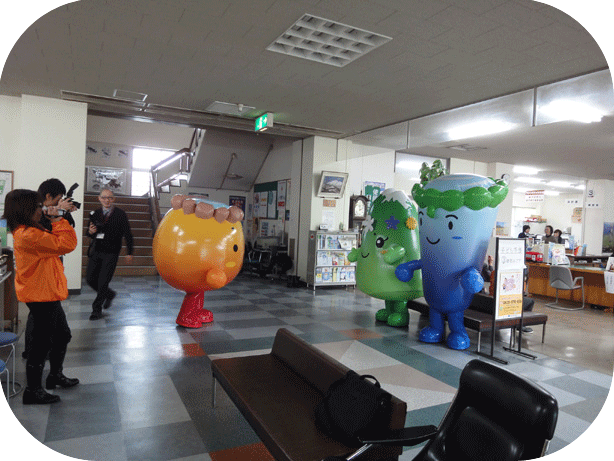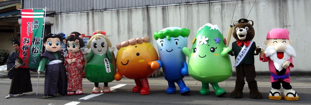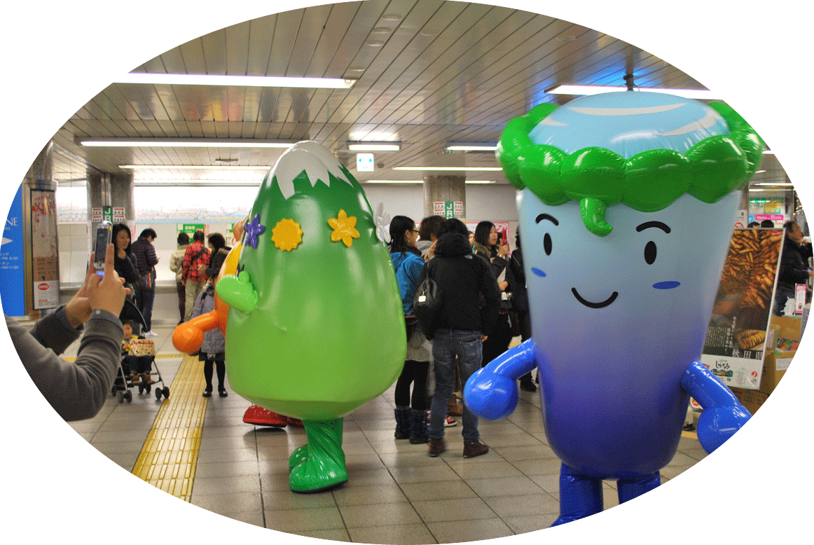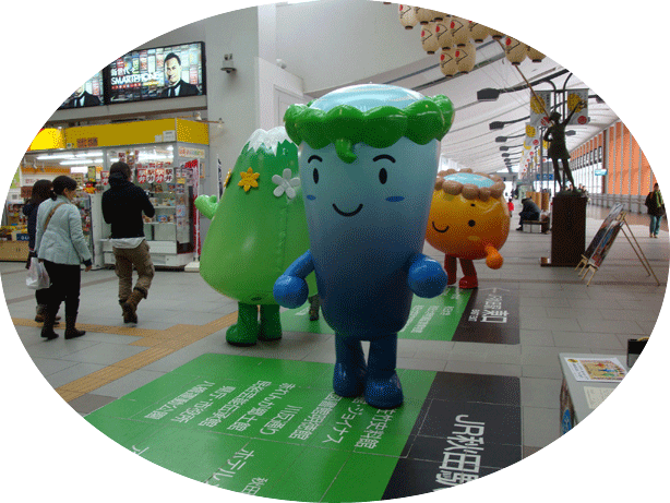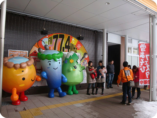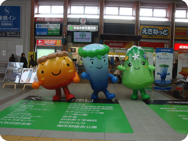 - 2011.12.27 JR角館駅、もちつき大会にてゆるキャラ集合。
