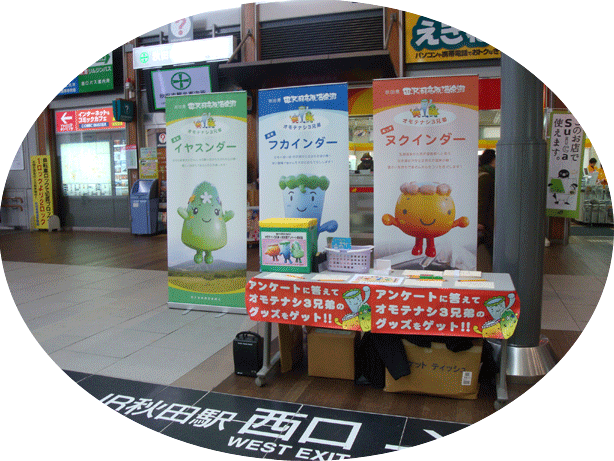 【大曲の花火秋田県南まるごと物産展にオモテナシ3兄弟出動】(2012.08.25)