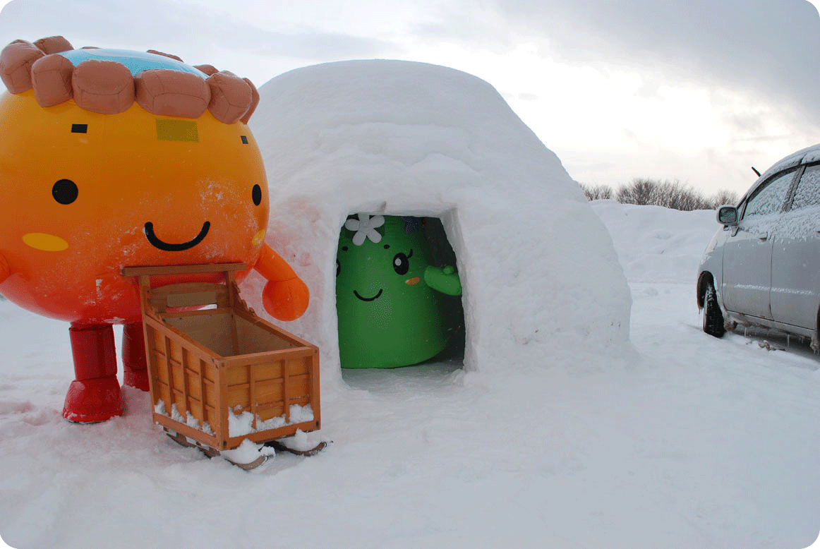 ご近所のゆるキャラたちが大集合!雪上ステージで紹介をしました。