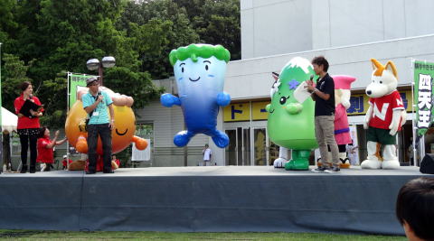 参加したご当地キャラたちが集合して自己紹介をしました。