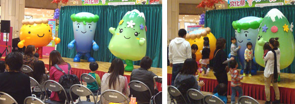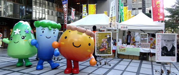 - 2012.10.14 全県商工会主催の秋田駅前アゴラ広場での物産イベントに3兄弟がステージ出演及びふれあい活動