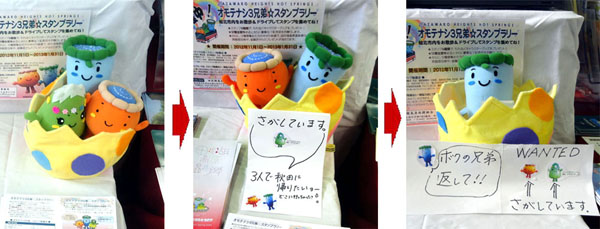 - 2012.11.15 11月15~30日オモテナシ3兄弟のぬいぐるみ紛失事件が新聞・TVで報道される。