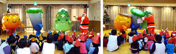 クリスマス会に3兄弟とサンタのおじさんが登場!