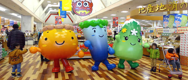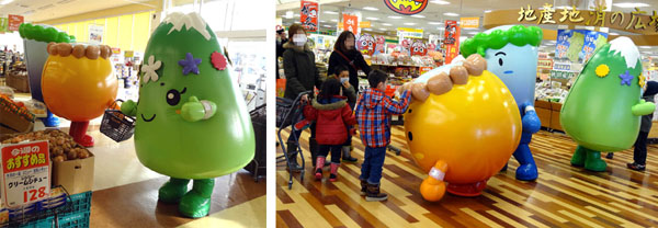 【地元スーパーマーケット(タカヤナギ)にお客さんとのふれあい・観光PRに出動】(2013.01.12、01.19)