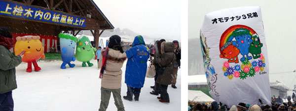 - 2013.02.10 仙北市西木で開催させる上桧木内の紙風船上げのステージショーに出演