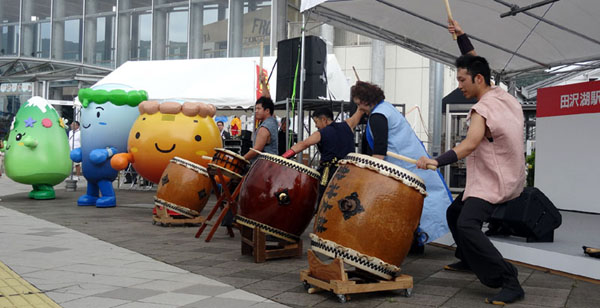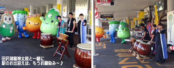 田沢湖龍神太鼓のメンバーと一緒に~田沢湖駅のお出迎えのベストチームだよ♫