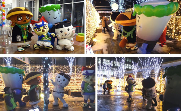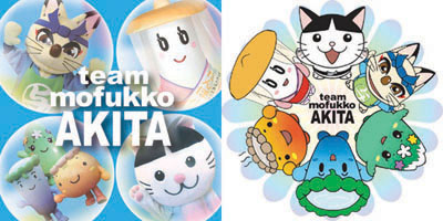 ニャジロウ・与次郎・たんぽ小町ちゃん・オモテナシ3兄弟の4組が団結して「チームもふっこあきた」を結成しました。