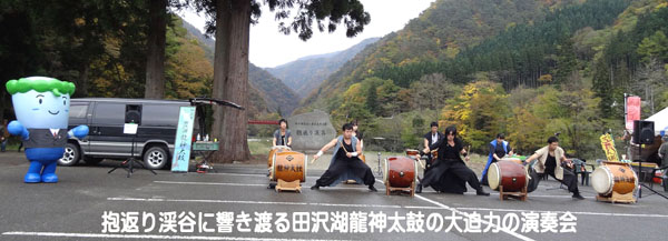 【抱返り渓谷の紅葉祭にフカインダー出動with田沢湖龍神太鼓】(2013.11.03)