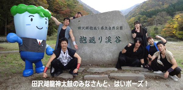 - 2013.11.03 抱返り渓谷の紅葉祭にフカインダーが単独出動、田沢湖龍神太鼓の演奏会に合わせて出演