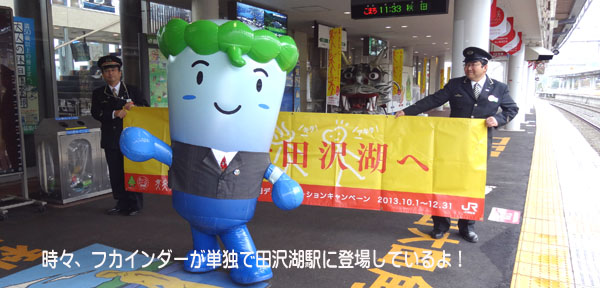 【田沢湖駅にフカインダーが時々おもてなしに出動】(2013.10.13~12.08)