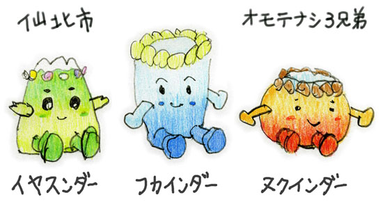 | 乳頭温泉から田沢湖高原へと向う引き湯の中から 生まれた温泉の妖精!その愛嬌と温かさで皆さん の心と体のコリをほぐします。 秋田弁の「温かい=ぬくい」が名前の由来。 特徴:回転技が得意な、やんちゃな男の子。 左右が分からないので、踊りが合わない。 頭の露天風呂をなでなですると 健康になるというご利益がある。 |