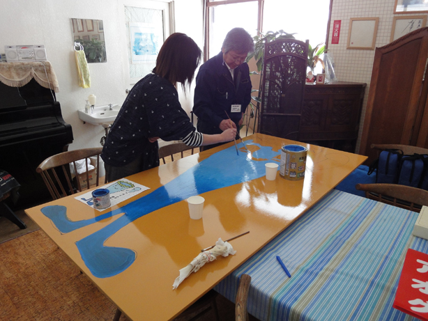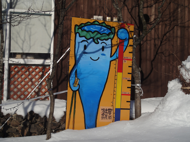 【積雪計制作中、なんとオジサンたちの手作りなのです】
