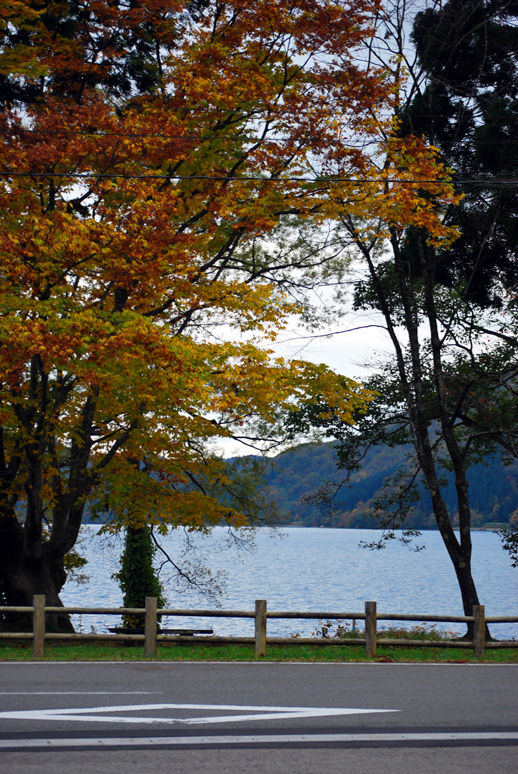 潟分校、田沢湖畔はまだまだです(2011.10.17撮影)