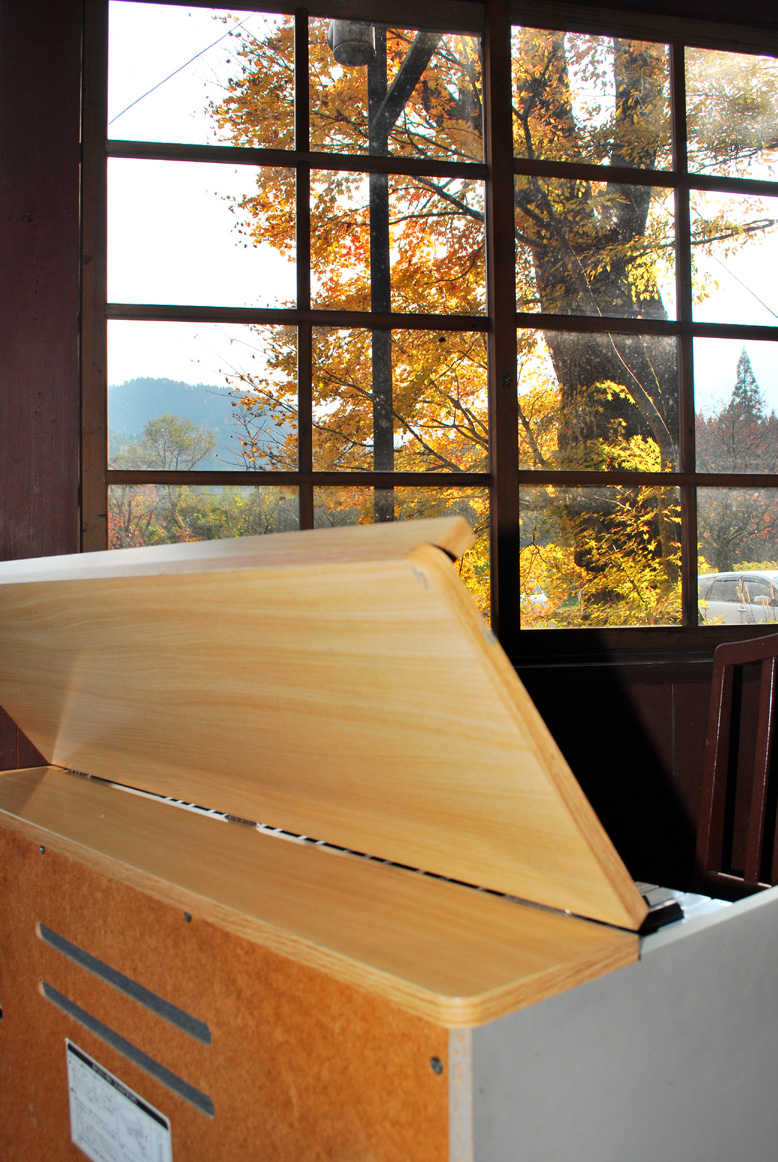 潟分校はだんだんと紅葉の色が濃くなってきました。窓からは秋の景色が望めます。